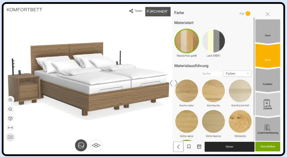 Eine benutzerfreundliche Oberfläche und sehr intuitive Bedienführung führt Interessenten mühelos zur Wunschkonfiguration. Das erhöht die Kundenzufriedenheit und steigert die Kaufwahrscheinlichkeit.