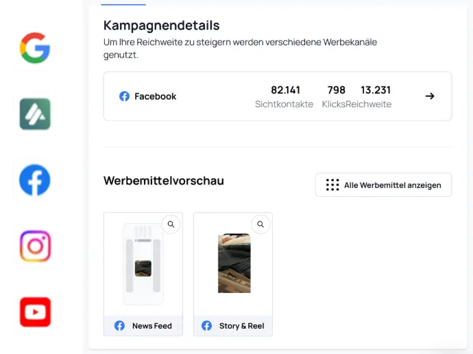 Nutzen Sie Kanäle wie Facebook und Instagram, um Ihre Zielgruppe direkt zu erreichen. Wir bieten flexible Motiv-Auswahl, die perfekt auf Ihre Zielkunden abgestimmt ist.